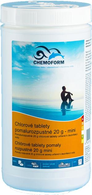 CHEMOFROM Chlórové tablety Mini sú pomaly rozpustné 20g chlórové tablety určené k dezinfekcii vody v bazénoch.