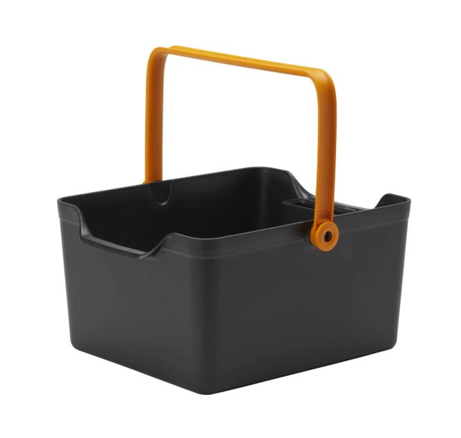 Box Fiskars na prehľadné ukladanie záhradného náradia a jeho prenášanie z interiéru do exteriéru. Telo je vyrobené z odolného plastu s 20% podielom recyklovaného plastu. Priestranný box obsahuje aj odnímateľný košík s otvormi, ktorý sa zavesuje na steny boxu. Košík je ideálny na uloženie nožníc, záhradníckych nožníc a ďalšieho drobného náradia. Držadlo je zaistené v hornej polohe pri prenášaní jednou rukou, alebo sa použijú bočné držadlá pri prenášaní oboma rukami. Box má vhodné rozmery na uloženie v štandardných skriniach a skrinkách. Pokiaľ ponechávame box vonku, odporúčame ho umiestniť na kryté miesto, mimo dosahu priameho slnka a počasia.