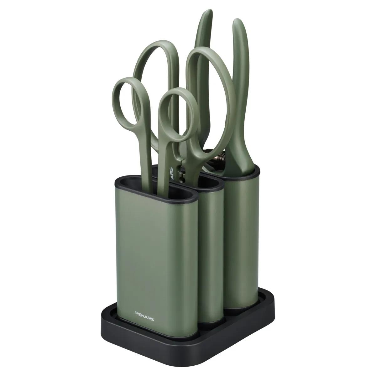 Premeňte svoju terasu, balkón alebo dom na sviežu zelenú oázu vďaka sade nožníc Fiskars Plant. Sada obsahuje prestrihávacie nožnice so štíhlym elegantným dizajnom pre presné strihanie, nožnice s veľkými okami v rukovätiach ideálnymi na odstraňovanie listov a tŕňov zo stoniek kvetín a záhradné nožnice s robustnými rukoväťami pre najťažšie strihanie stoniek, vetiev a koreňov do o 1. Ku všetkým nožniciam sa dodávajú voľne stojace puzdrá. Všetky nožnice majú čepele z kalenej ocele, presne brúsené na čisté a zdravé rezy. Tvarované rukoväte sa skvele držia v ruke. Voľne stojace puzdrá s nožnicami je možné umiestniť samostatne na pracovnú dosku, alebo ich vložiť do spoločnej základne a mať tak štýlovo uložené náradie.