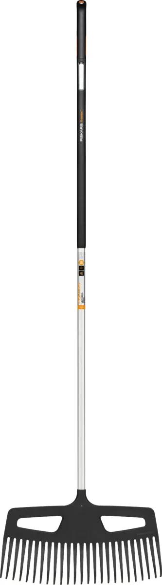 Široké hrable s pružnými prstami pre efektívne hrabanie lístia na veľkých plochách. Odolná a súčasne ľahká násada z tvrdeného hliníka na jednoduché upratovanie záhrady bez zbytočnej námahy. Násada s komfortným povrchom z materiálu Softgrip™ v mieste úchopu. Praktický otvor na skladovanie